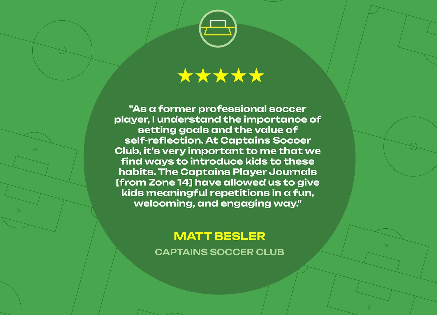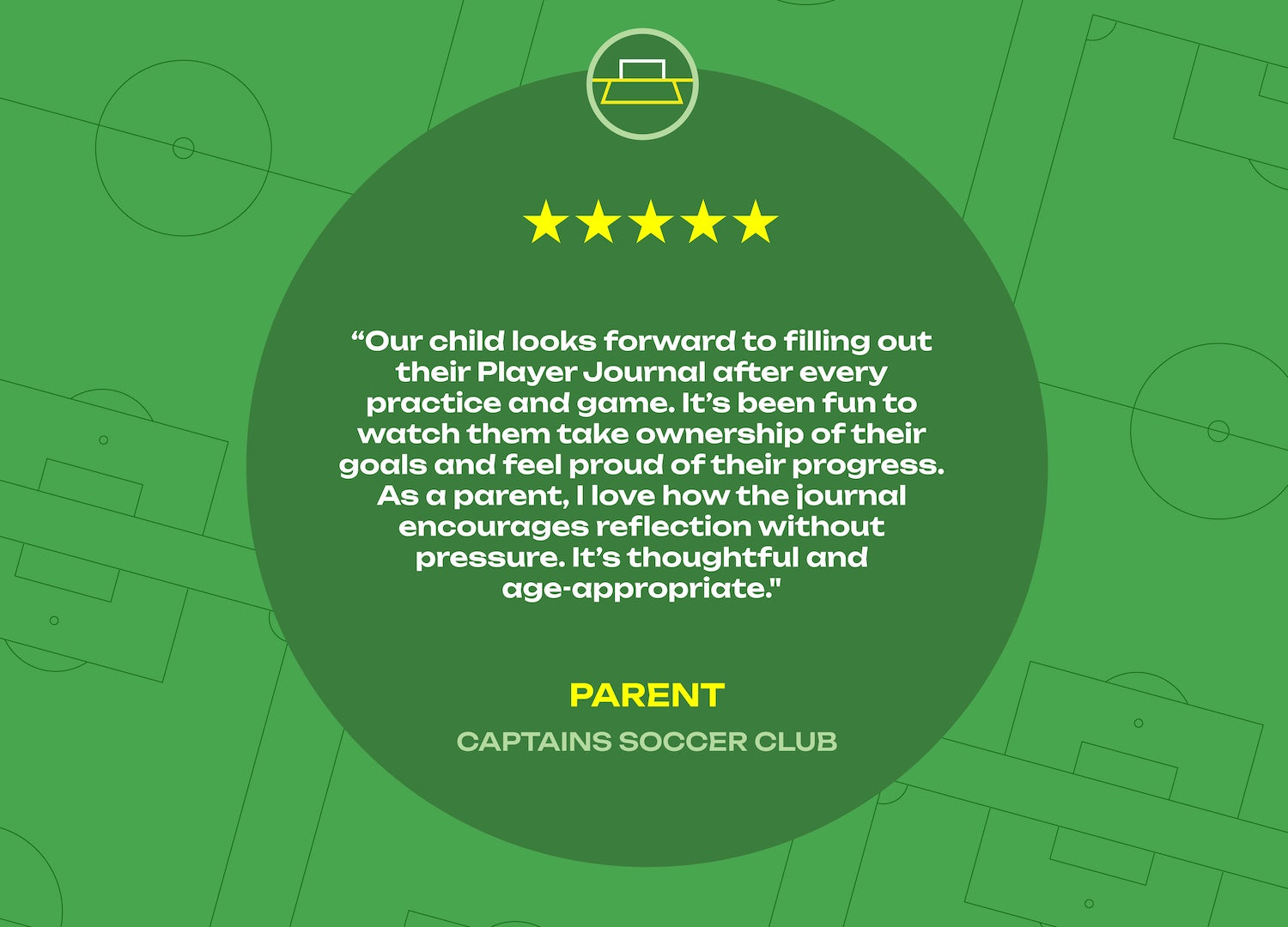 “This journal goes far beyond soccer skills. It’s helping our child learn how to reflect, recognize strengths, and work through challenges in a really positive way.” -Club parent